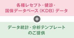 各種レセプト・健診・国保データベース(KDB)データに加え、データ統計・分析テンプレートを提供し、保健事業を支援します。